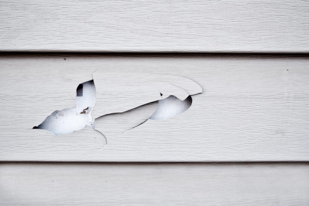 Impact damage: Hail, falling branches, or debris can crack vinyl, fiber cement, or engineered wood siding.